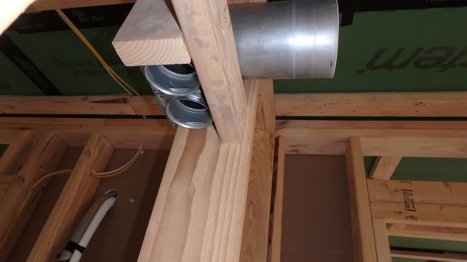 This is a slick little device. It looks like a big copper tube. From an engineering perspective, the fewer moving parts the better! Moving parts break or need maintenance. In a Passive House the largest energy load is heating hot water. The drain water heat recovery component simply takes the warm water going down the drain and "pre-heats" the cold water going to the shower valve as well as the cold water entering the water tank. The efficiency of this component is directly related to length. In our case, we are using a 48" long heat exchanger. This will recover roughly 50% of the heat going down the drain.